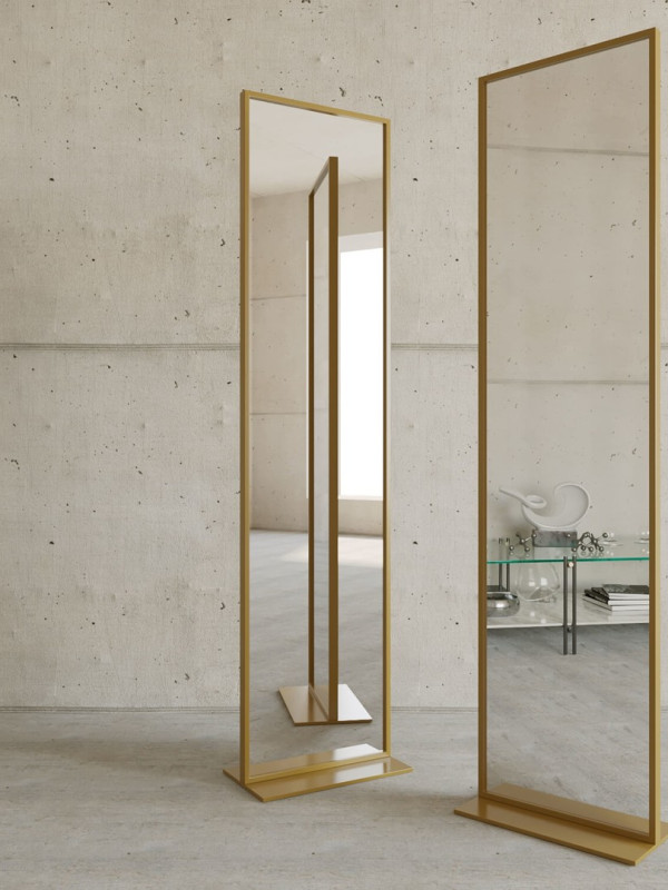 Дизайнерское напольное одностороннее зеркало Glass Memory Ablestar в металлической раме золотого цвета в Серове